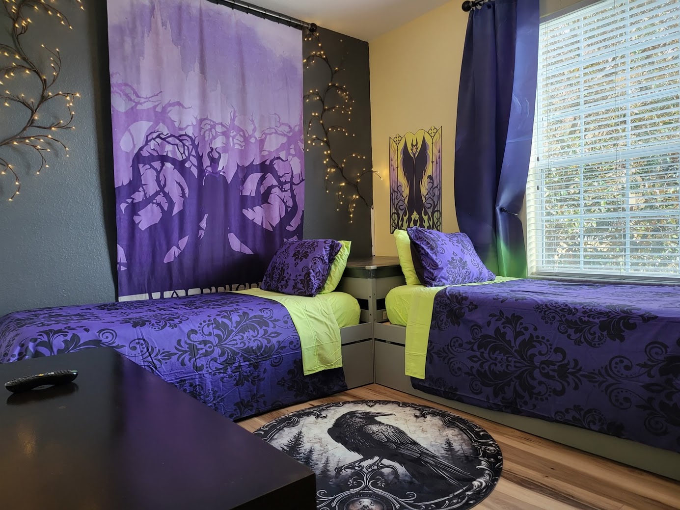 MALEFICENT'S LAIR will surprise and delight your youngest beasties with lighted brambles, triple low bunk beds, game system and a spectacular view of the Windsor Hills water park! It's the perfect place for kids to relax, rest and recover from a day of high adventure, because after all - a certain darkness is needed to see the stars.