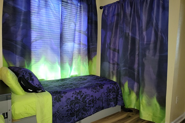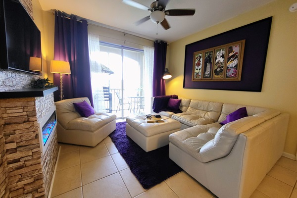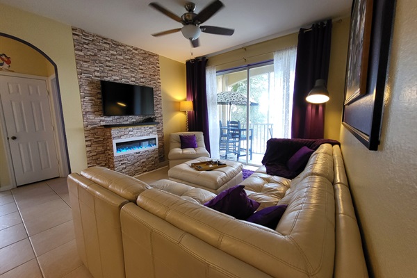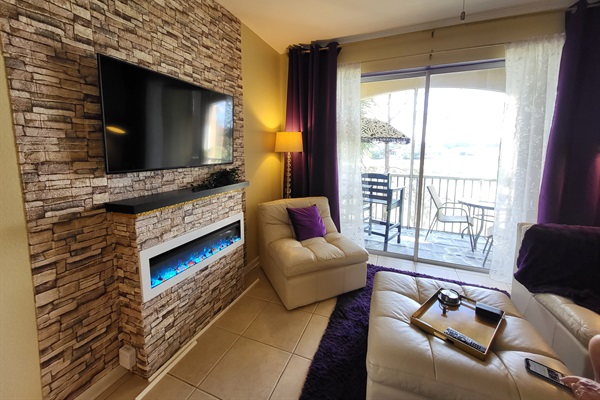 Our color changing fireplace - perfect for watching the best animated film ever!
